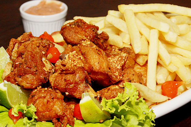 ![]() | Frango frito, Batata frita |